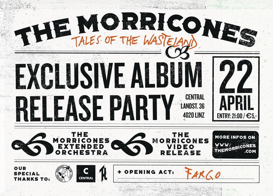 The Morricones laden zur Album-Release-Party der vorab gepressten exclusiven Fan-Edition ihres Debüt-Albums „Tales of the Wasteland“.